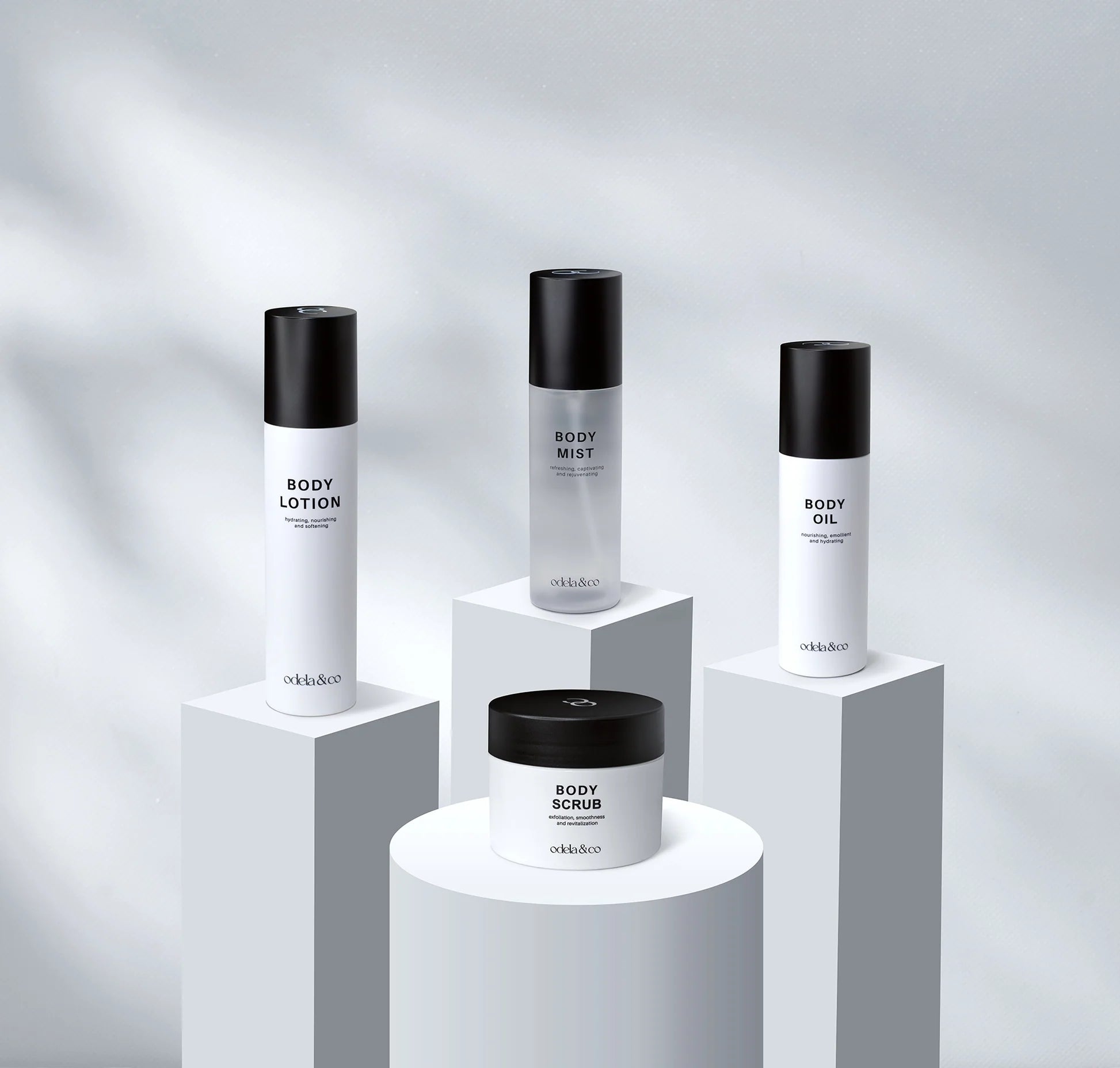 The body set consists of scented body mist, scented body lotion, scented body oil, and scented body
